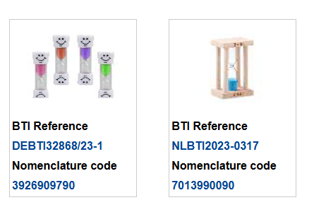 Therefore, as shown in the following EU BTI, an hour glass is generally classified under heading 3926 or 7013, depending on the material of the vessel.