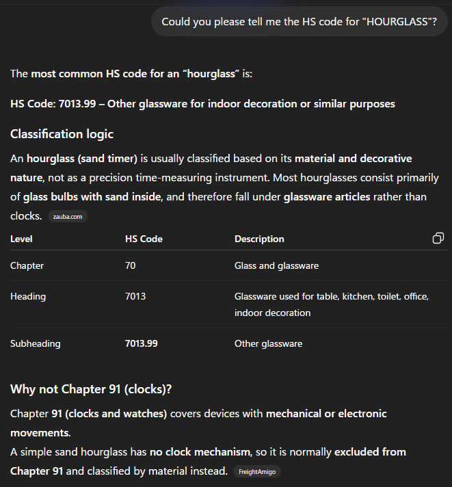 While it is true that AI can be helpful by providing correct HS codes for certain items, it frequently outputs incorrect codes the moment it encounters complex classification rules that it cannot fully grasp.
