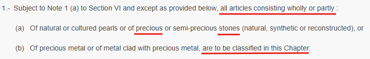 However, a human expert stops right there. This is because they are aware of the existence of the following powerful provision in the legal notes of Chapter 71 (Note 1 to Chapter 71):