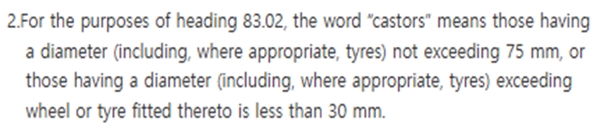 In other words, no matter how much the product in front of you functions or looks like a “caster,” and even if it is printed as a “caster” in the catalog, it will not be treated as a “caster of heading 83.02” under HS classification if it does not meet these dimensional specifications.