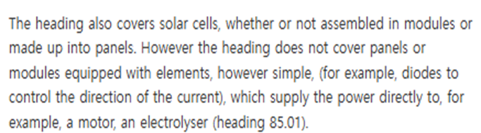 In other words, a solar panel that can “directly supply power” to devices such as smartphones via a USB port or similar interface is no longer a mere “solar cell (85.41),” but is classified as a “generator (85.01).